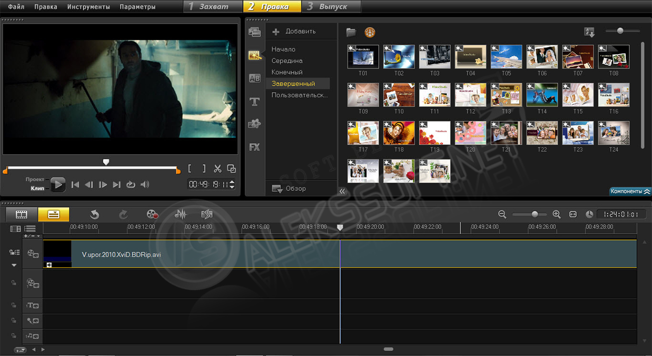 - Используйте самые современные средства редактирования видео (картинка в картинке, полный контроль с клавиатуры, мастер-фонограмма спец эффектов, различные спец эффекты и переходы) в многодорожечной монтажной линейке, чтобы сделать свои произведения действительно личностными.